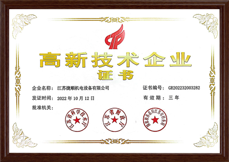 机电设备高新技术企业证书