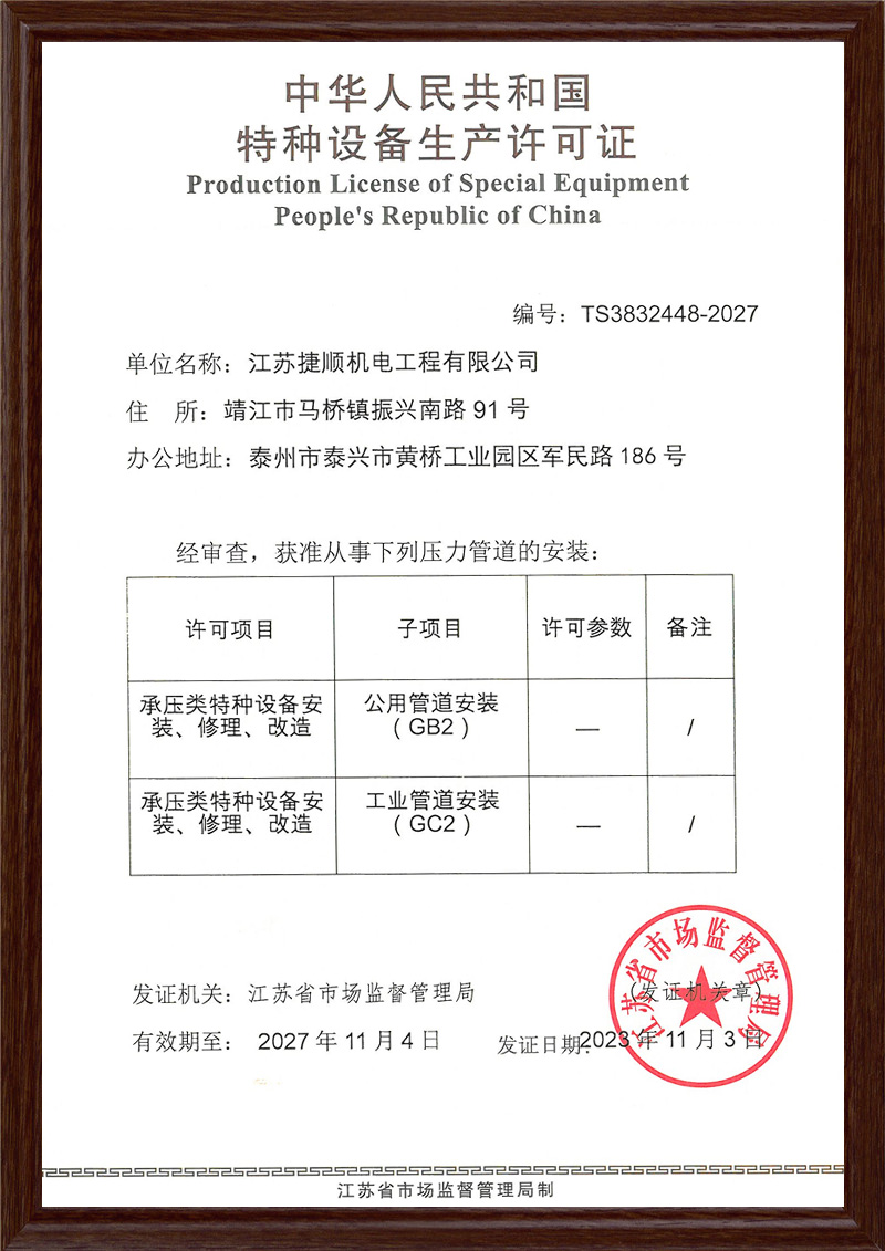 压力管道许可证