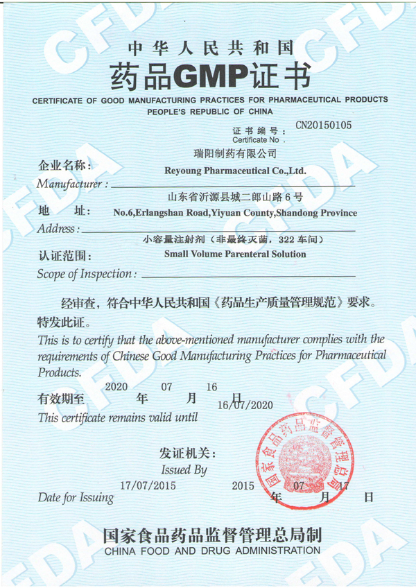恭喜我公司合作的瑞阳制药有限公司荣获GMP证书!